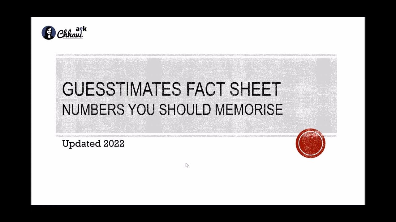 Guesstimate Factsheet What Numbers To Remember For Solving Guesstimates Youtube